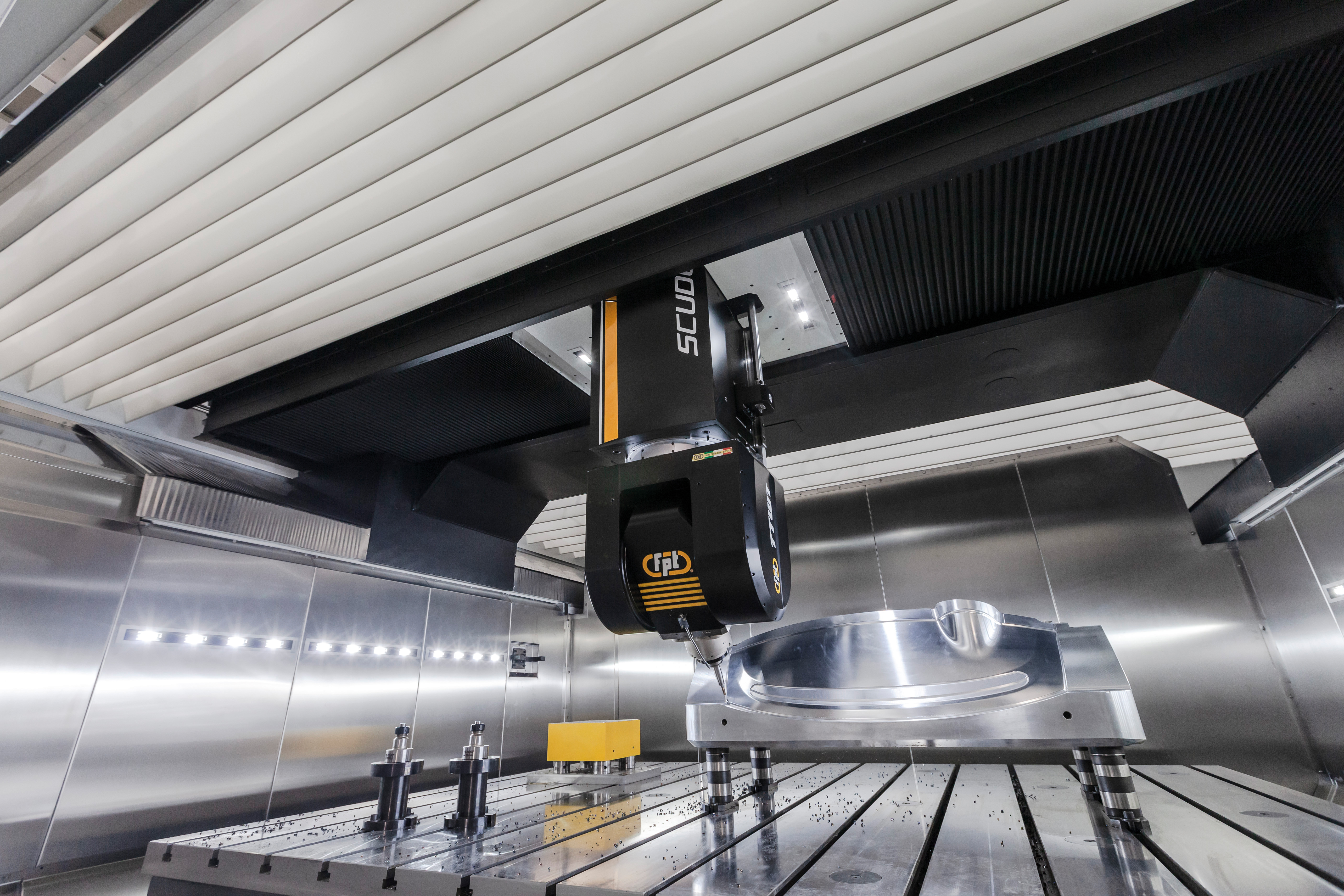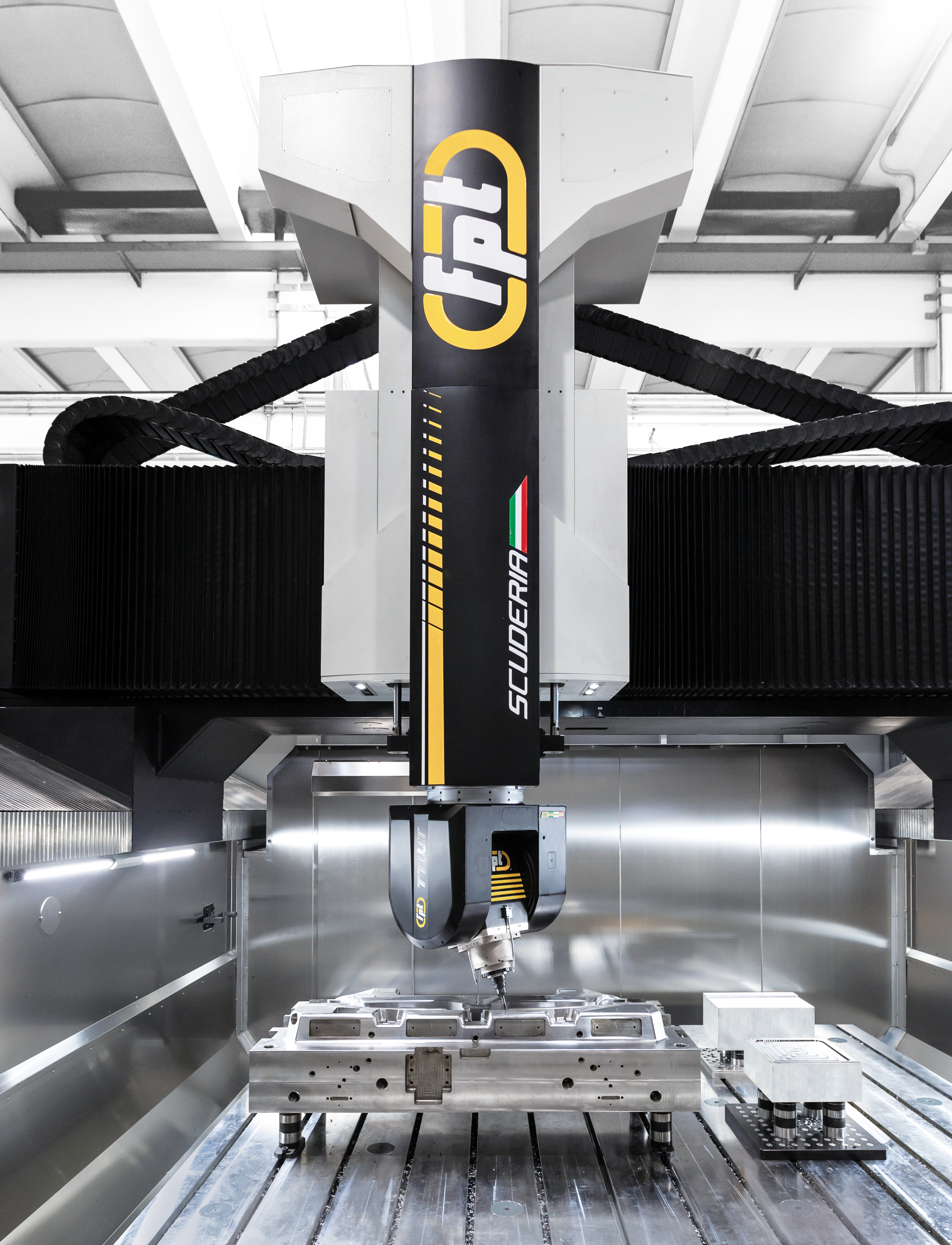 Scuderia is a state-of-the-art 5-axis vertical milling machine built to deliver absolute precision and performance in large-part machining. Its advanced gantry architecture and FEM-optimized cast-iron structures ensure maximum rigidity, while the integrated IAT – Intelligent Active Thermal control system eliminates thermal expansion errors by actively compensating for temperature variations during machining. Ideal For |