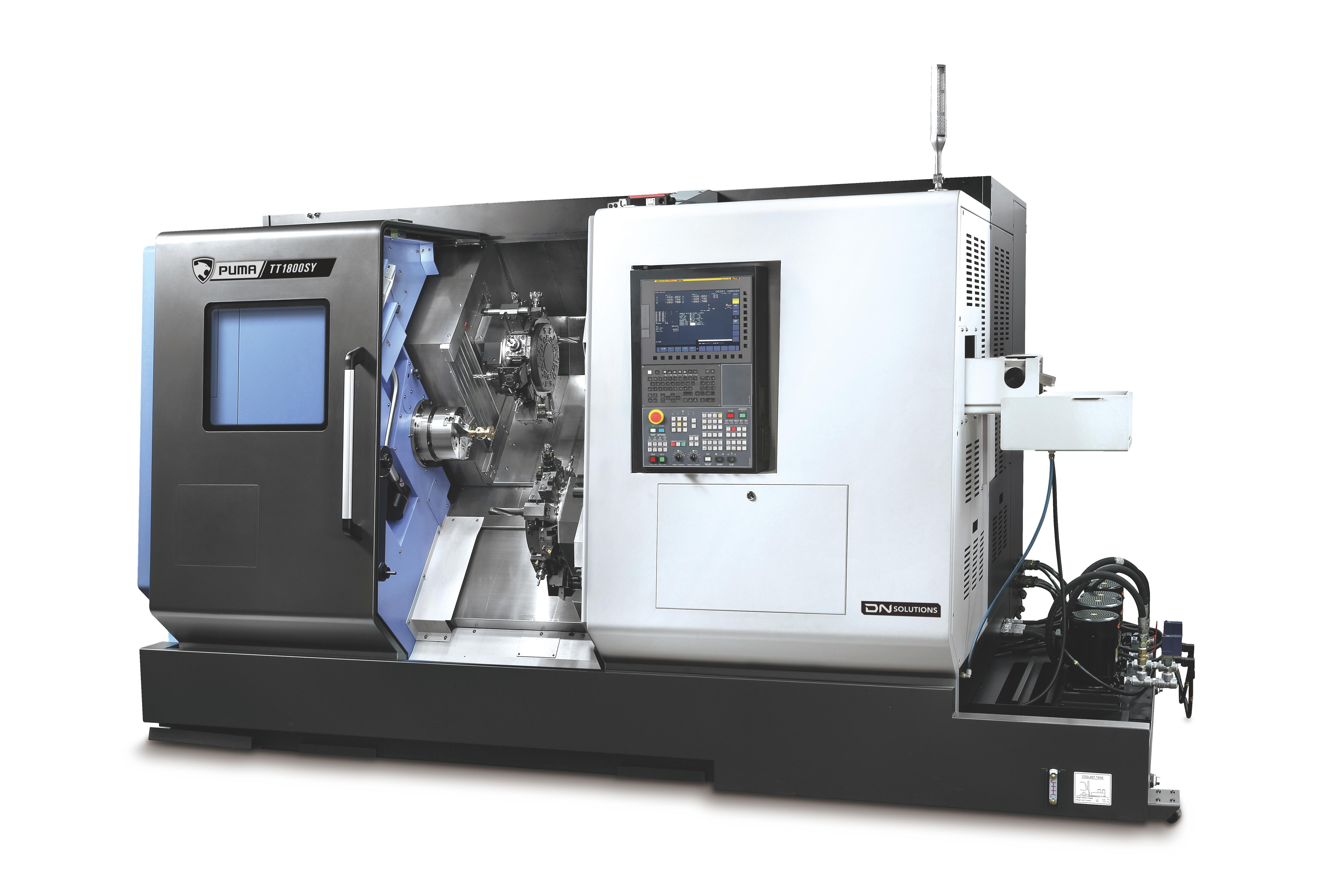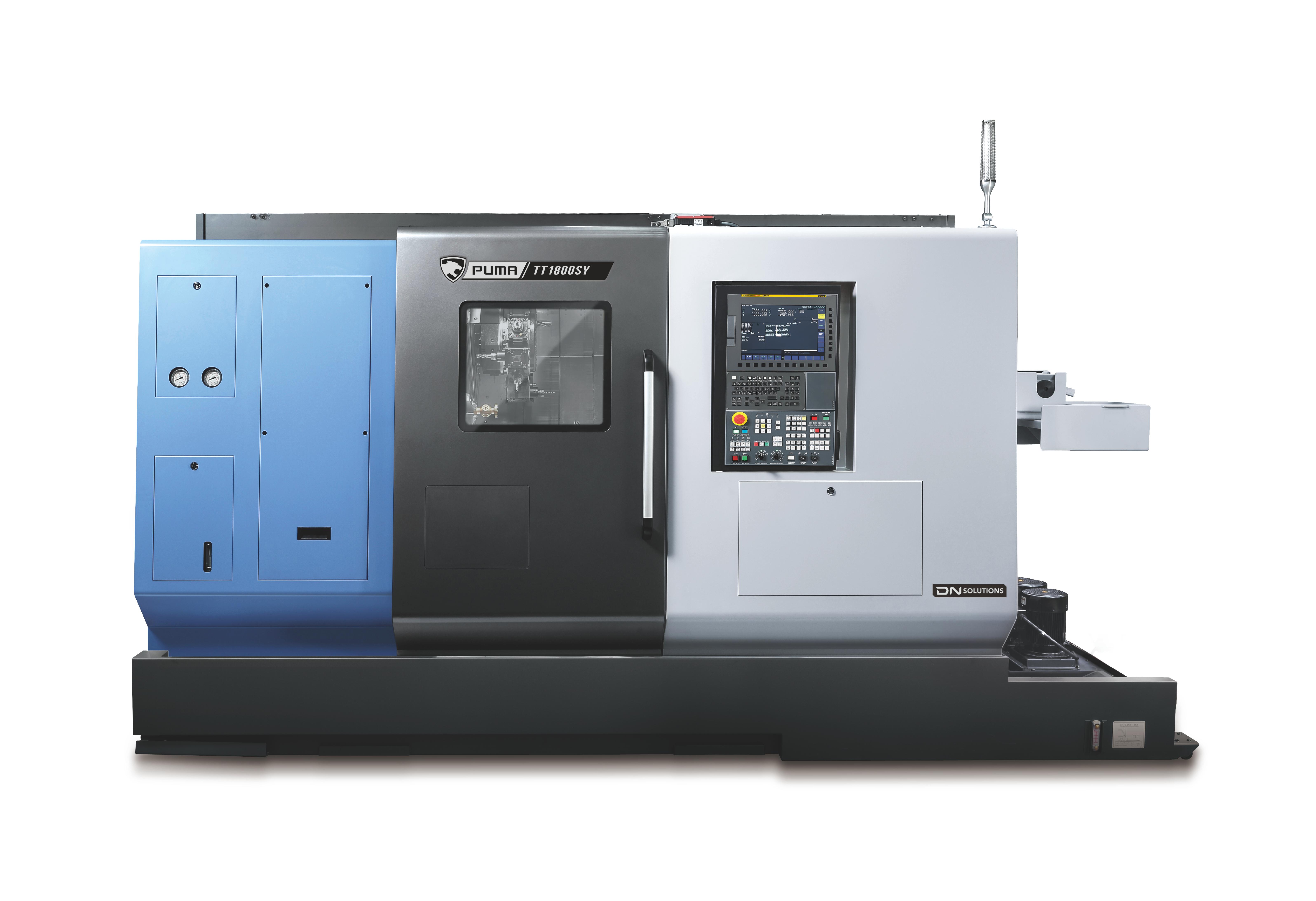 PUMA TT1300, TT1800, TT2100 ja TT2500 seeria on kõrge tootlikkusega horisontaalsed treikeskused, millel on varraste läbilaskvus vahemikus 42 mm kuni 81 mm. Need masinad on varustatud kaksikvastassuunaliste spindlite ja ülemise/alumise torniga, millel on Y-telje funktsioonid, et võimaldada samaaegset kahe külje töötlemist. Mõlemad spindlid on võrdse võimsusega ja võimaldavad sõltumatut töötamist ning automaatne detailide väljutamine suurendab oluliselt tootlikkust. PUMA TT seeria on rahvusvaheliselt tuntud oma klassi parima jõudluse ja töökindluse poolest, tehes sellest ühe DN Solutions müüduima toote. |