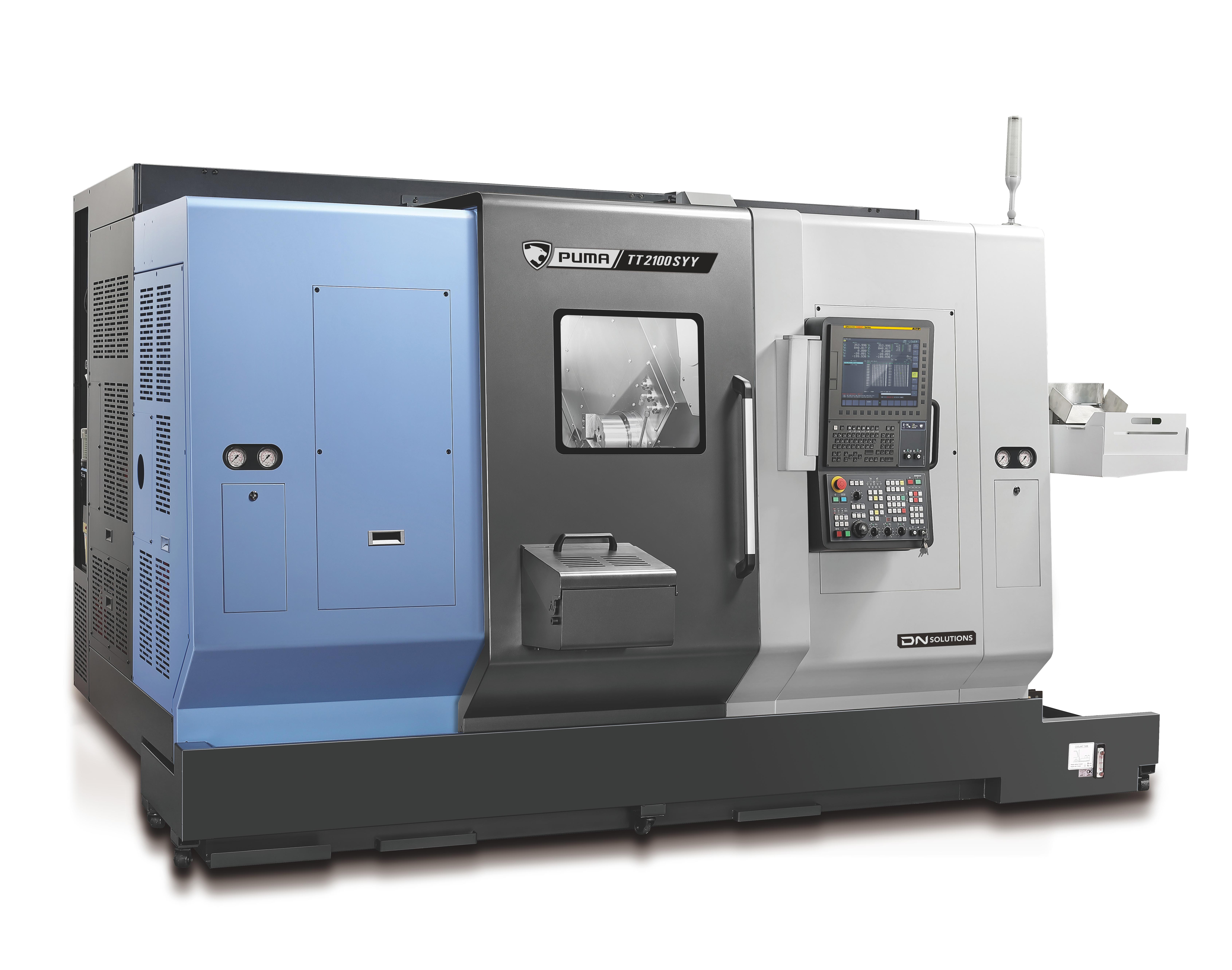 PUMA TT1300, TT1800, TT2100 ja TT2500 seeria on kõrge tootlikkusega horisontaalsed treikeskused, millel on varraste läbilaskvus vahemikus 42 mm kuni 81 mm. Need masinad on varustatud kaksikvastassuunaliste spindlite ja ülemise/alumise torniga, millel on Y-telje funktsioonid, et võimaldada samaaegset kahe külje töötlemist. Mõlemad spindlid on võrdse võimsusega ja võimaldavad sõltumatut töötamist ning automaatne detailide väljutamine suurendab oluliselt tootlikkust. PUMA TT seeria on rahvusvaheliselt tuntud oma klassi parima jõudluse ja töökindluse poolest, tehes sellest ühe DN Solutions müüduima toote. |